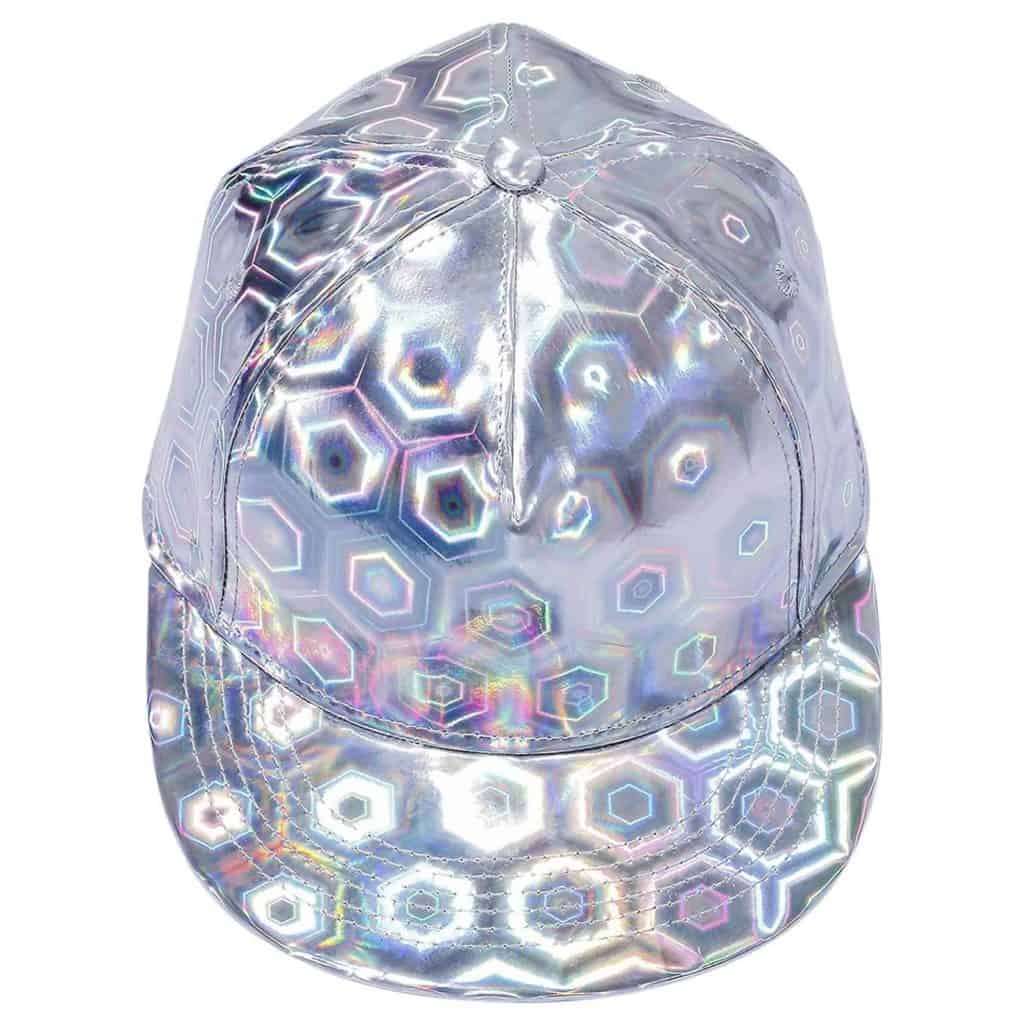 This hat has a super trippy hexagon hologram design. It reflects light, and looks awesome. It also comes in gold in case that’s more your style.