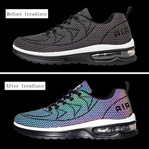 These shoes look like regular running shoes until bright light hits them, then they reflect the light, and help you stay safe.